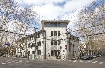 長樂路富民路路口的梧桐濃蔭里,有一棟素凈簡約的建筑——灰墻、木門、鋼窗,線條利落,若非有心留意,很難發(fā)現(xiàn)墻內(nèi)別有洞天。