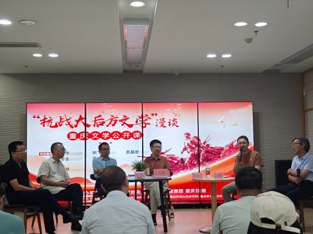 9月2日,由重慶市作家協(xié)會(huì)、重慶新華出版集團(tuán)、重慶日?qǐng)?bào)主辦的重慶文學(xué)公開課之《“抗戰(zhàn)大后方文學(xué)”漫談》在沙坪壩書城舉行。以“抗戰(zhàn)大后方文學(xué)”為主題,本場(chǎng)活動(dòng)的嘉賓們——凌孟華、熊飛宇、王昌忠、付冬生、吳佳駿等專家學(xué)者和文學(xué)編輯,結(jié)合自身創(chuàng)作研究及工作實(shí)踐,講述了抗戰(zhàn)時(shí)期曹禺、茅盾、冰心等作家及相關(guān)文學(xué)社團(tuán)在重慶進(jìn)行的抗戰(zhàn)書寫,深入解讀了作家在特殊歷史背景下的創(chuàng)作動(dòng)機(jī)、家國情懷和民族氣節(jié),致力于讓塵封的文學(xué)記憶被更多公眾所知,助推偉大抗戰(zhàn)精神在當(dāng)代更好傳承。