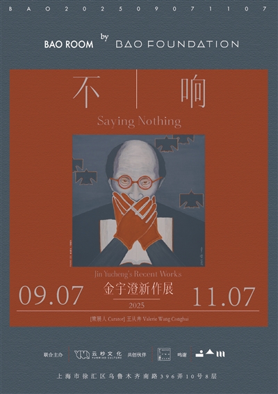 2025年9月,金宇澄在上海珍寶藝術基金會舉辦名為“不響”的畫展,畫展的海報用了和畫冊一樣的自畫像,畫中的金宇澄戴著紅框眼鏡和紅色手套,兩只手捂住了自己的嘴巴。這畫似乎將“不響”具象化了,帶著某種戲謔的態(tài)度。