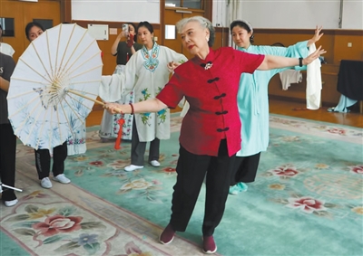 “劉長(zhǎng)瑜花旦表演藝術(shù)人才培訓(xùn)”項(xiàng)目課堂上,劉長(zhǎng)瑜為學(xué)員示范教學(xué)。