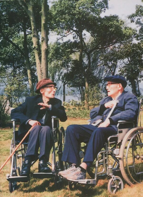 您書里寫到您祖父和巴金的交往,文章的結尾是關于您祖父和巴金最后一張合影的——兩位老人坐在輪椅上,戴著遮陽帽,您說“我祖父用他與生俱來的幽默對這張照片做了點評:‘兩個叫花子’”。僅從這一句點評就能感受到夏衍是個非常有趣的人,所以想請您再舉例講講您祖父的幽默感。