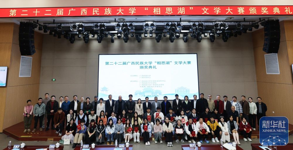 第二十二屆廣西民族大學(xué)“相思湖”文學(xué)大賽頒獎(jiǎng)典禮11月2日在相思湖校區(qū)文化研習(xí)基地報(bào)告廳舉行。本次活動由廣西民族大學(xué)和廣西作家協(xié)會聯(lián)合主辦,廣西民族大學(xué)文學(xué)影視創(chuàng)作中心、文學(xué)院、廣西現(xiàn)代文學(xué)館、校團(tuán)委共同承辦。
