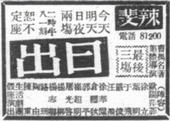 圖二:《申報(bào)》的《日出》演出廣告,1946年7月27日