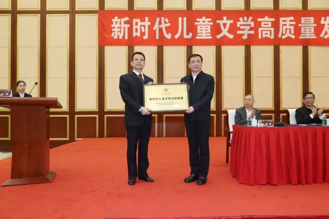 張宏森為中國作家協(xié)會新時代兒童文學出版聯(lián)盟授牌。曾銳接牌,并宣讀聯(lián)盟倡議書。
