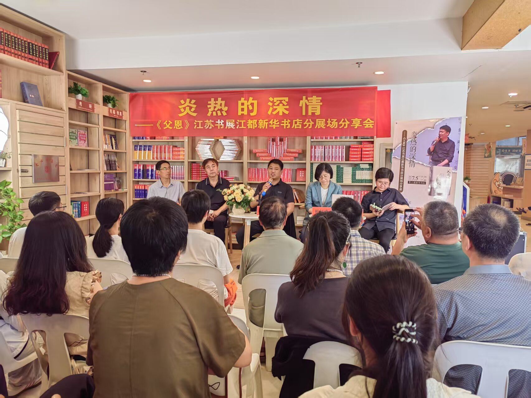 7月5日下午,揚州市作協(xié)主席周榮池攜長篇散文力作《父恩》,到江蘇書展江都新華書店分展場現(xiàn)場,分享創(chuàng)作經(jīng)驗。