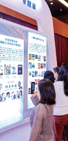 目前,中國(guó)網(wǎng)絡(luò)文學(xué)海外活躍用戶約2億人,覆蓋全球200多個(gè)國(guó)家和地區(qū);海外本土創(chuàng)作作品已超200萬(wàn)部,海外創(chuàng)作生態(tài)已成規(guī)模。圖為觀眾參觀網(wǎng)文出海情況展板。資料圖片