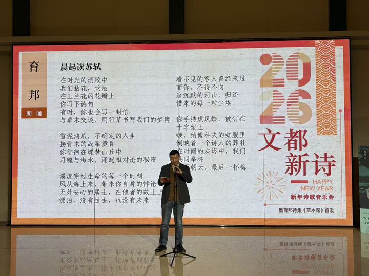 跨年夜,南京雞籠山下,世界文學(xué)客廳,一場(chǎng)跨年詩(shī)歌音樂會(huì)暨育邦詩(shī)集《草木深》首發(fā)式,為辭舊迎新的時(shí)刻帶來別樣的心跳。