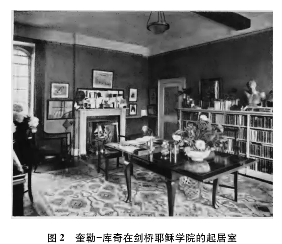 奎勒-庫(kù)奇任職于劍橋大學(xué)耶穌學(xué)院(Jesus College),引文中的“皇家學(xué)院”有誤。黃佐臨常去聽他講莎士比亞和亞里士多德《詩(shī)學(xué)》,晚間上的一些小課,地點(diǎn)應(yīng)在耶穌學(xué)院四方院里面奎勒-庫(kù)奇作為院士(fellow)可以享用的套間(與白天的公開講座不是同一個(gè)地方),而且聽課的那八九個(gè)男生應(yīng)該就是耶穌學(xué)院主修英國(guó)文學(xué)的學(xué)生: