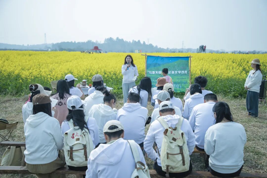 人氣最旺的是“與春天同頻”花海文學(xué)沙龍,有三十多位游客被《星火》文青們感染,紛紛駐足獻(xiàn)聲朗讀《星火》詩(shī)文。有游客說(shuō)在油菜花海里邂逅《星火》,是這個(gè)春天最大的驚喜。
