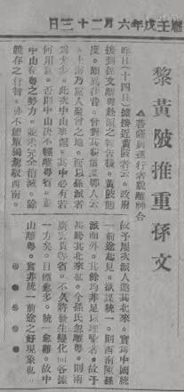 黎黃陂推重孫文