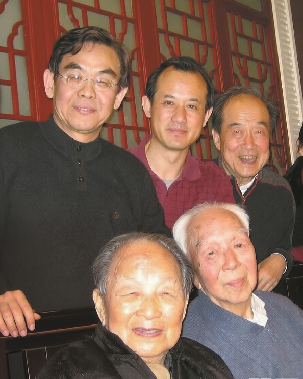 2008年2月合影,前左起為黃苗子、楊憲益;后左起為作者、李輝、邵燕祥