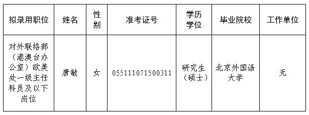 根據(jù)中央機(jī)關(guān)及其直屬機(jī)構(gòu)2026年度考試錄用公務(wù)員工作有關(guān)要求,經(jīng)過(guò)筆試、面試、體檢和考察等程序,確定唐敏同志為中國(guó)作家協(xié)會(huì)2026年度擬錄用人員,現(xiàn)予以公示。