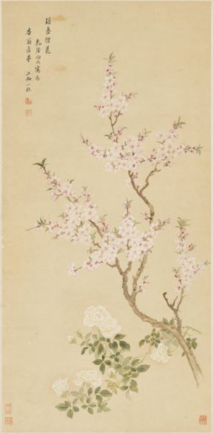 繼承惲壽平衣缽、將沒骨桃花再攀高峰的,是清代鄒一桂。其傳世的桃花作有《桃花圖》軸、《百花圖》卷等?!短一▓D》軸(北京故宮博物院藏),以胭脂為魂,繪出“千葉桃花勝百花”的春日盛景。畫中桃花,以重粉點瓣,再以胭脂淡淡罩染,濃淡交錯,層次分明;花苞以略濃胭脂點染,盛放花朵以淡胭脂輕暈,胭脂與白粉、赭石搭配得當。鄒一桂不刻意求工,唯求自然天趣,將北宋工筆的精致與元代寫意的灑脫融為一體,筆下桃花柔中帶剛,媚而不俗,既是對春光的描繪,更是對平淡超逸意境的追求。
