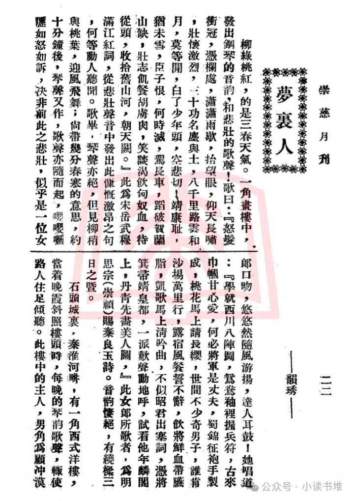 韻琇:《夢里人》,《崇慈月刊》1932年6月第3期