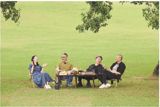 《一個文學(xué)的午后》首期節(jié)目聚焦“松弛感”,許多在別的綜藝節(jié)目中會被剪掉的空鏡頭都被保留了下來:鏡子里映照的藍天白云、草地上奔跑嬉戲的孩童、旅行拍照的游客、風(fēng)吹樹葉的婆娑……生活的本來面目與煙火日常得以顯現(xiàn)。余華、蘇童、陳明昊、魏冰心四位常駐嘉賓圍坐在大榕樹下,用心聆聽風(fēng)的聲音,他們從對現(xiàn)實生活的感知中延展出《現(xiàn)實一種》《第七天》等文學(xué)作品中構(gòu)建的立體寫作世界,進而探討了當(dāng)代年輕人生活被工作填滿、很難擁有真正屬于自己時間的議題,節(jié)目首期便開門見山,破題“一個文學(xué)的午后”。