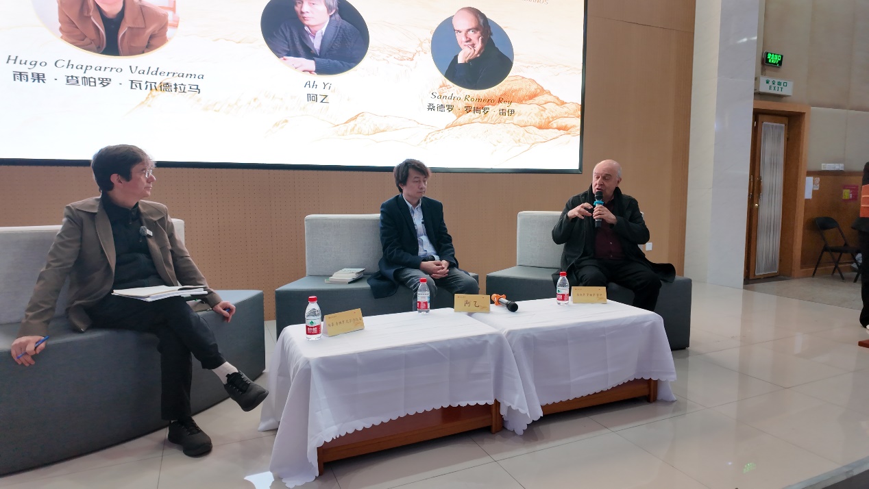 2026年4月14日,哥倫比亞作家雨果·查帕羅·瓦爾德拉馬、桑德羅·羅梅羅·雷伊來到首都師范大學(xué),與作家阿乙圍繞“中哥作家筆下的青年命運(yùn)與時代癥候”進(jìn)行對談,來到現(xiàn)場的還有首都師范大學(xué)和古城中學(xué)的學(xué)生,古城中學(xué)的學(xué)生還獻(xiàn)上了精彩的西語表演。該活動由中國作協(xié)對外聯(lián)絡(luò)部、五洲傳播出版社、首都師范大學(xué)聯(lián)合主辦。