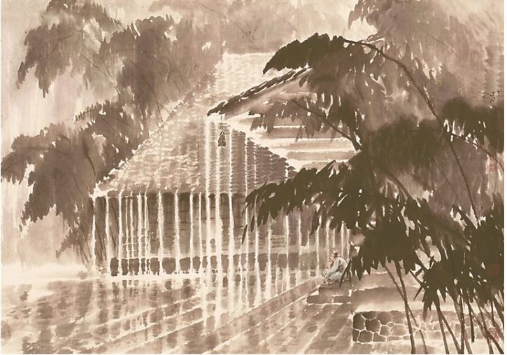 檐前聽雨雨霖鈴(中國畫) 劉墉